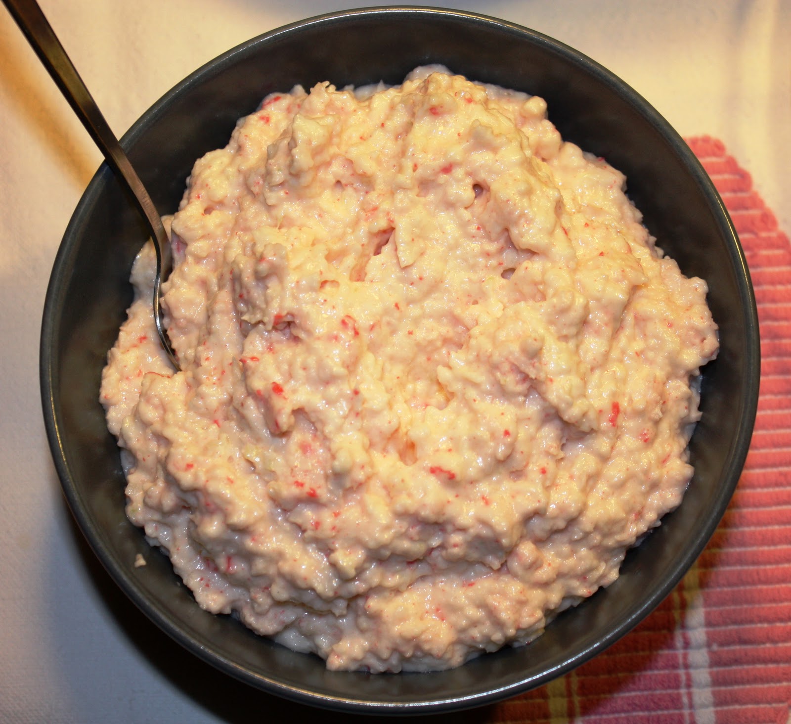 Un cop pelada la ceba només cal barrejar-ho tot junt sense afegir res més i triturar-ho fins a convertir-lo en una massa untable. La textura final amb més o menys trossos de ceba i cranc podeu adaptar-la al vostre gust.