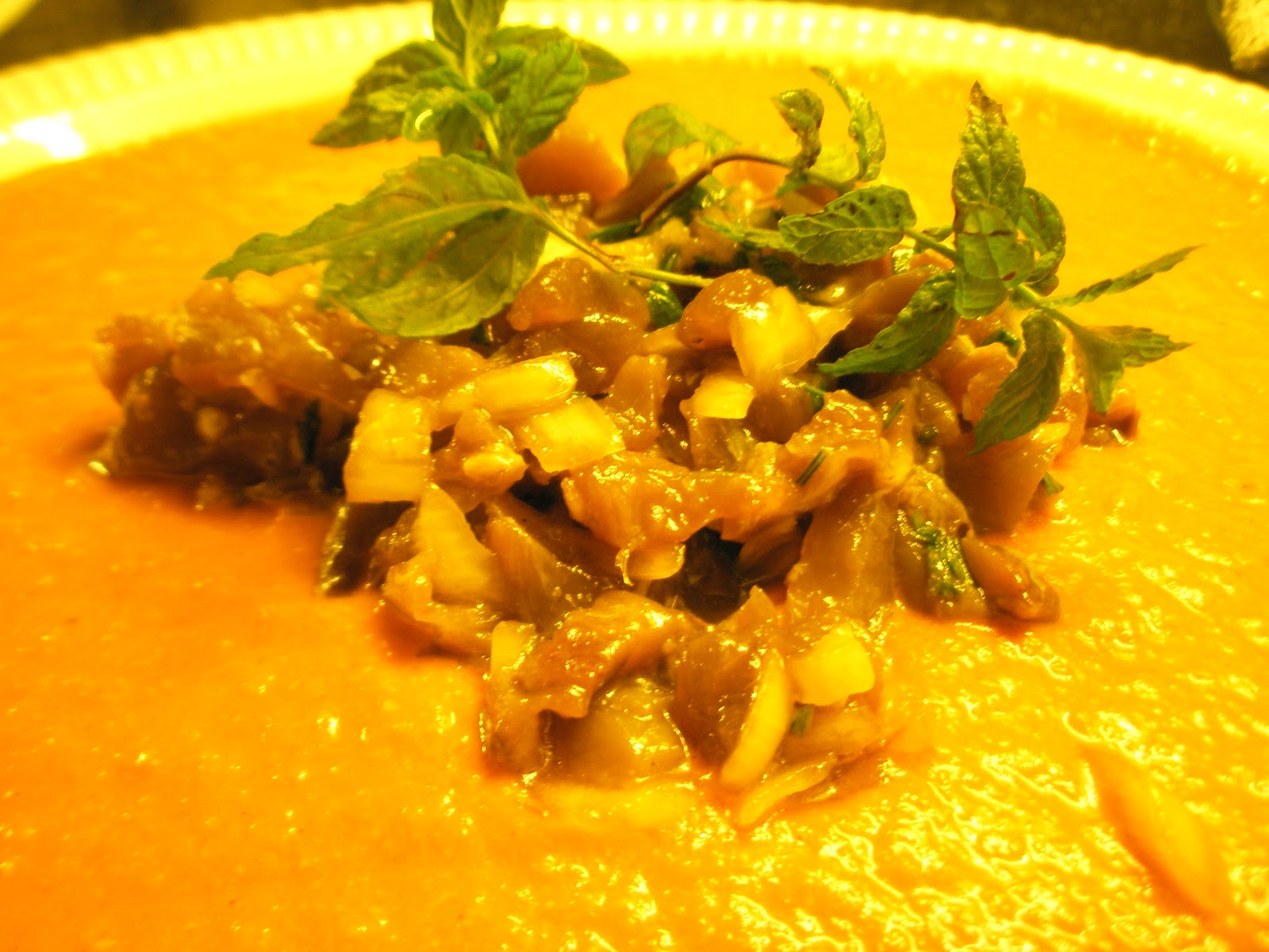 Amb la mateixa forquilla que agafarem el tàrtar, barregem una mica de la sopa de romesco i ens ho posem a la boca. La barreja és exquisida i tot i que si us passeu amb la sopa pot ofegar tot el peix i treure l’encant al tàrtar.