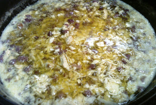 Ens caldrà: 50gr de pit de pollastre, 1 ceba, un gotet de xeres sec, oli d’oliva.