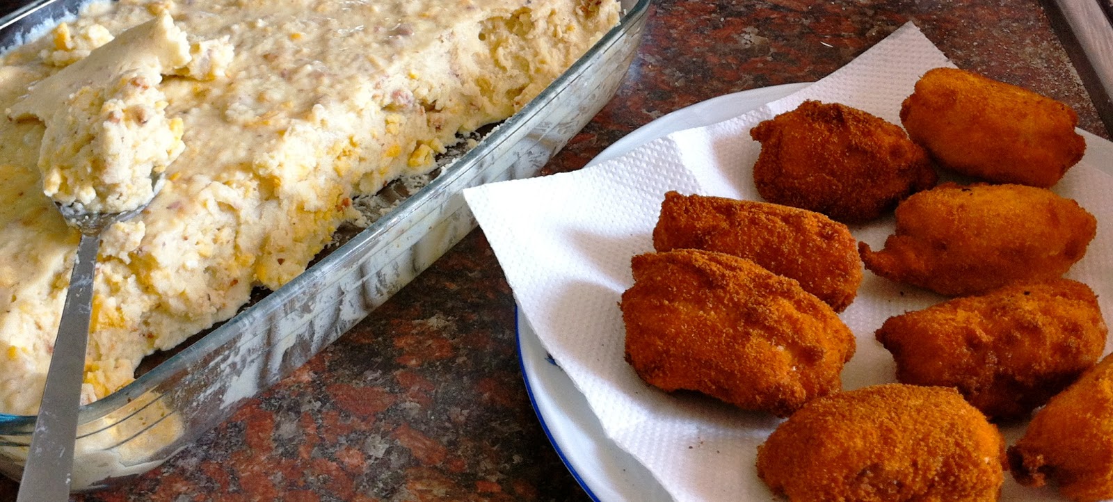 L’endemà li donem forma i les arrebossem com he comentat abans: farina de galeta + ou batut + farina de galeta i fregim amb oli d’oliva ben calent. Cal que les croquetes estiguin ben separades entre elles.