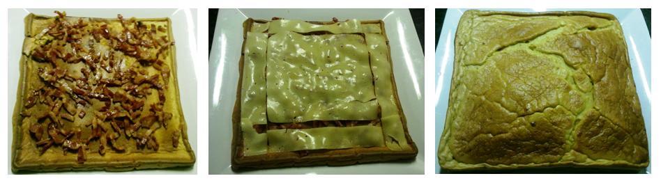 En primer lloc fregim la patata i la ceba igual que ho couríem per a fer la típica truita de patates. Un cop fregit, ho triturem tot juntament amb els sis ous i una mica de sal fins a aconseguir una textura homogènia. Aboquem la meitat d’aquest triturat al motlle i el posem al forn durant quinze minuts a 200º. Aneu vigilant-ho i mentrestant, coeu el bacó en la mateixa paella i el reserveu. Quan el primer pis del pamcake estigui cuit, el desemmotlleu i el reserveu. Poseu a coure la segona meitat i mentre està al forn, poseu el bacó i el formatge (i el que tingueu per la nevera que us vingui de gust…) sobre de la primera planxa ja cuita. Quan estigui llesta l’altre meitat del pamcake tapeu el farcit i ja està llest. El formatge ajudarà a enganxar les dues capes tot i que si no queda prou pres, podeu tallar-ho a daus i servir-ho amb uns escuradents que agafin les dues parts.