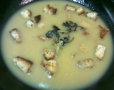Mentrestant, vaig agafar una mica més de pa sec, el vaig fer a daus i el vaig fregir a foc fluix amb una mica d’oli. Mentre es feia i sense perdre’l de vista, vaig fer uns fredolics i camagrocs que encara em quedaven de la darrera cacera de dissabte amb Bolets Petràs i els vaig coure amb un all ben picadet. Un cop fet i separat, vaig tallar un pit de pollastre a daus petitons i el vaig fer a la mateixa paella. Quan va estar rosset, vaig abocar un raig de soja i vaig separar-ho. .jpg)