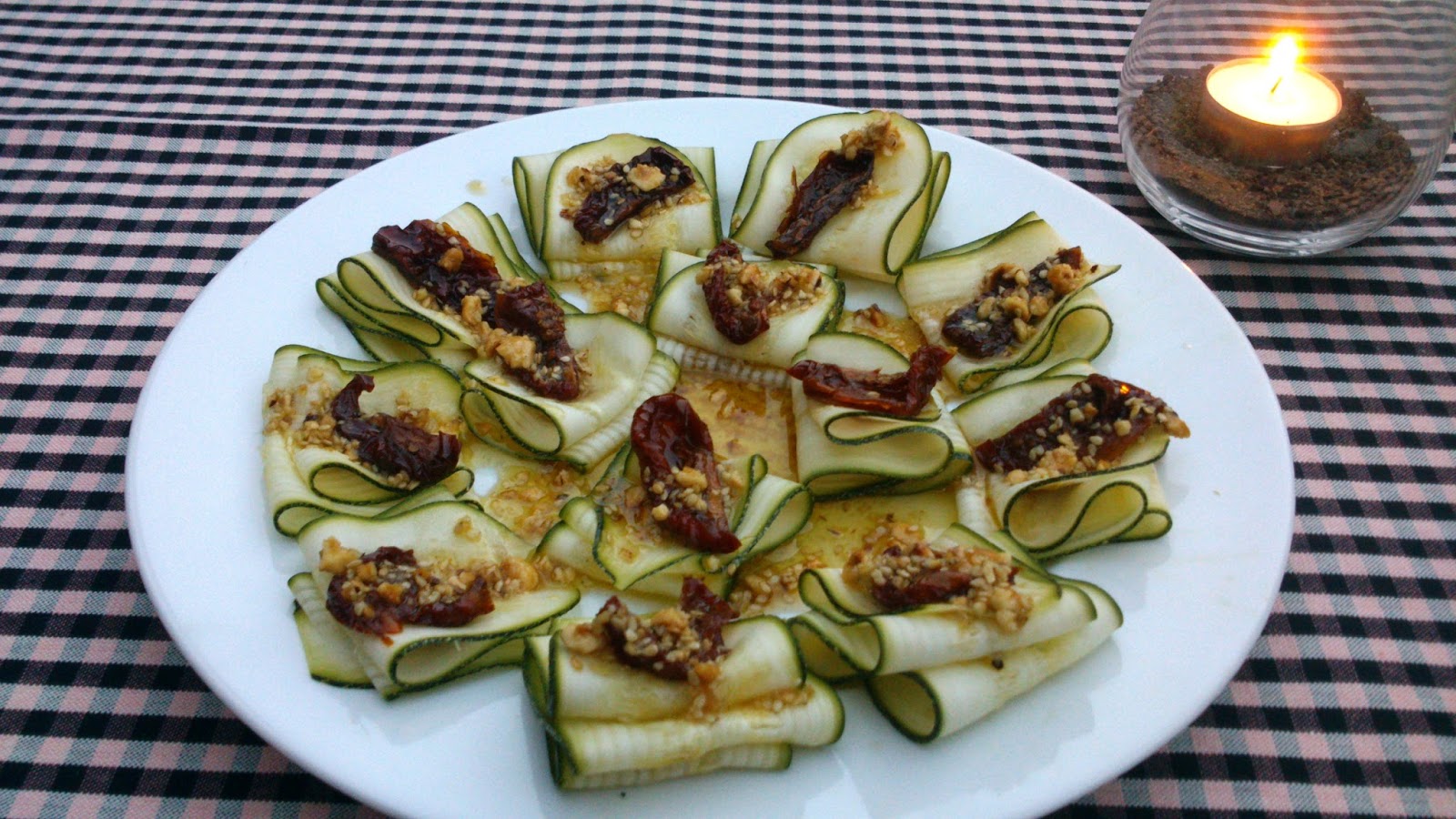 Menjar el carabassó en carpaccio és tot un descobriment!! fa poc vaig fer una amanida amb formatge i el resultat em va agradar molt, la provaré també amb tomàquets secs (que m'encanten i els poso a tot arreu!!)