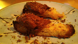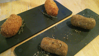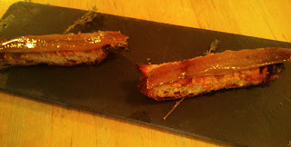 | Botifarró de ceba amb crosta i mousselina d’all i ou de guatlla |
