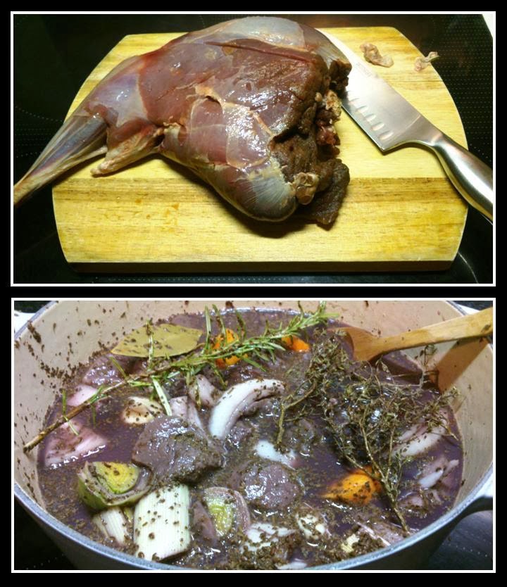 Una de les meves debilitats és el civet de senglar i tot i que el tipus de carn és diferent, les carns de caça major tenen unes semblances en el tipus de cocció que vaig decidir mantenir. A més, en una cerca superficial per la xarxa vaig constatar que no anava gens desencaminat.