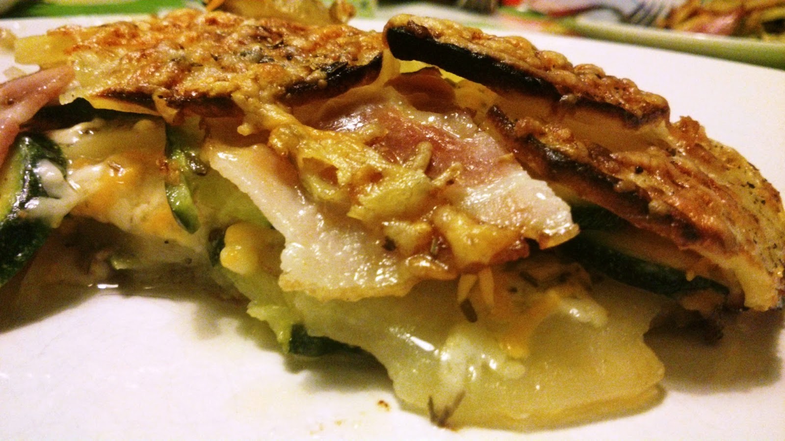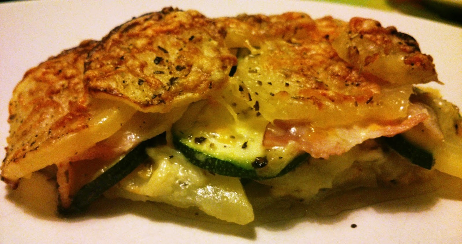 Aquesta que va vam preparar fa uns dies combina patata, carabassó, bacó, formatge i herbes provençals.