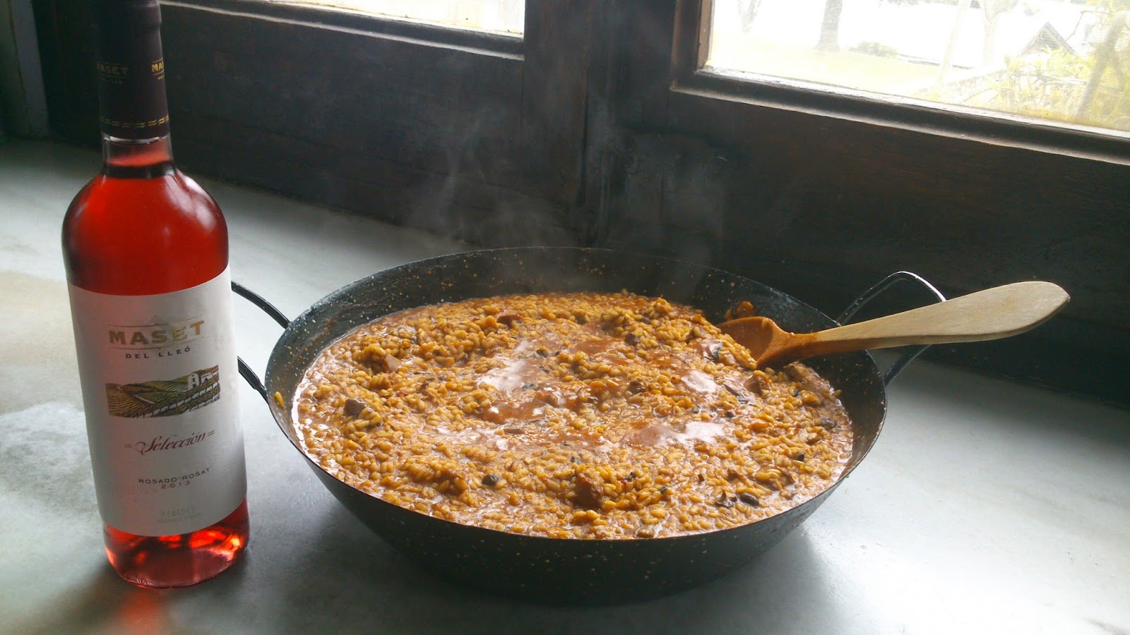 Per la resta: dues botifarres grans, un grapat de bolets secs (en aquest cas, de Cal Petràs), dos alls, tres litres de brou de carn i un quilo d’arròs.
