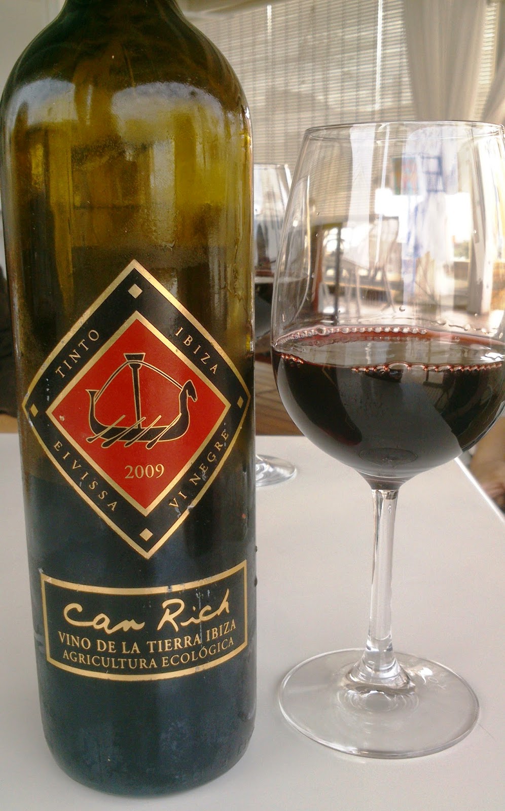 Com que vam sortir el divendres de matinada, de bon matí ja estàvem a la illa i amb un budell buit i els amfitrions ens van dur a la terrassa del restaurant es marès on vam treure el ventre de pena amb un entrepà de llom amb samfaina i frit de ceba i pebrot (la nostra samfaina, vaja) tot ben regat amb una delícia de vi negre eivissenc de Can Rich i per tirar avall, la primera dosi d’herbes Mari Mayans que acabaria formant part de la nostra dieta formenterenca