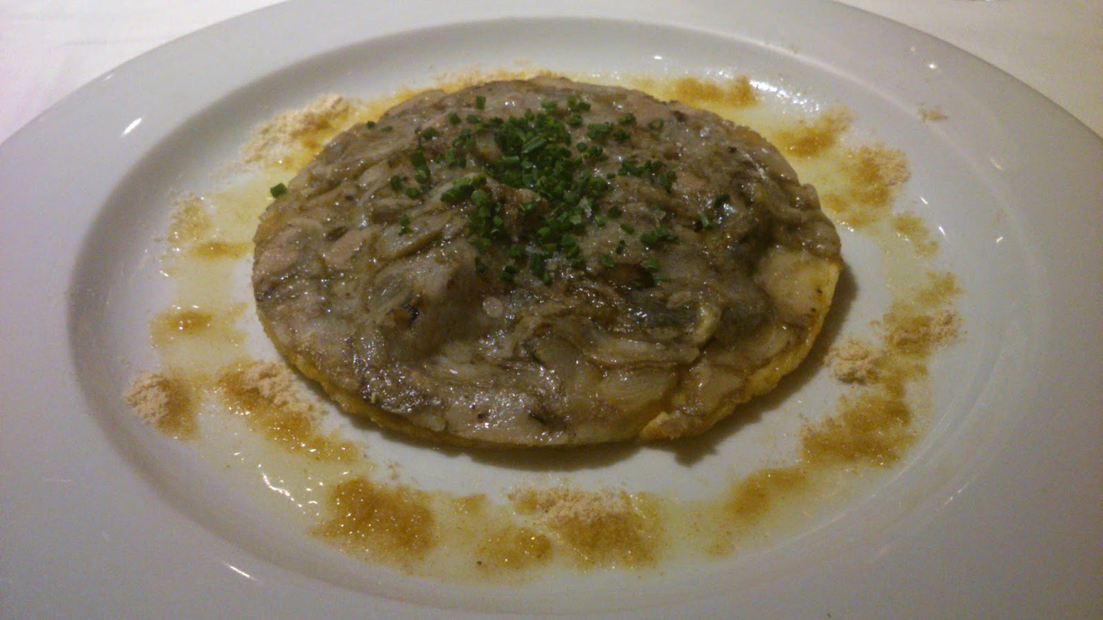 Truita de ceba amb foie, peus de porc i parmesà |