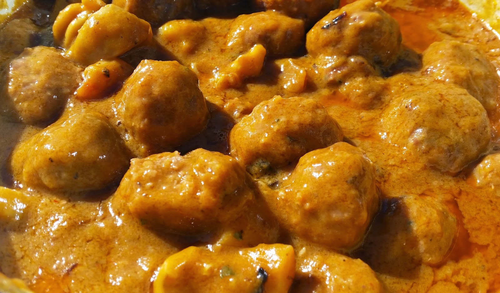 Vaig fer servir: 60 mandonguilles de vedella (de Cal David), mig quilo de sípia, mig quilo de gambes, una ceba gran, oli, farina, vi blanc, 500gr de tomàquet triturat, mig litre de fumet de marisc (gentilesa d’Aneto) tot i que podeu fer servir un fumet , sal i pebreEn primer lloc vaig arrebossar i passar per la paella les mandonguilles. Amb el mateix oli (que havia acumulat una bona quantitat de farina ja cuita de les mandoguilles) vaig sofregir la ceba foc lent i remenant sovint perquè amb la farina es pot enganxar i cremar molt fàcilment. Un cop amb la ceba va estar ben cuita i va ser el torn d’abocar-hi el tomàquet i deixar coure a foc lent sense deixar de remenar (afegim una cullerada petita de cafè amb sucre per a matar l’àcid). Quan el tomàquet va començar a estar enfosquit i evaporat vaig abocar un got de vi blanc i vaig deixar que reduís una bona estona. Quan el sofregit va estar llest, vaig abocar la sípia tallada a trossets i vaig deixar coure uns 15′ més encara a foc baix rectificant de sal i pebre. Passada aquesta estona, va ser el moment d’incorporar les mandonguilles i el brou de peix/marisc deixant xupxupejar uns 15 minuts més. Deu minuts abans de tancar el foc vaig incorporar les gambes pelades crues.