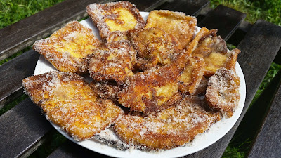 En primer lloc van infusionar una branca de canyella amb llet i la van deixar refredar. Mentrestant van batre els ous i van agafar llesques de pa sec i les van remollir amb la llet infusionada primer i les van passar pels ous batuts després.