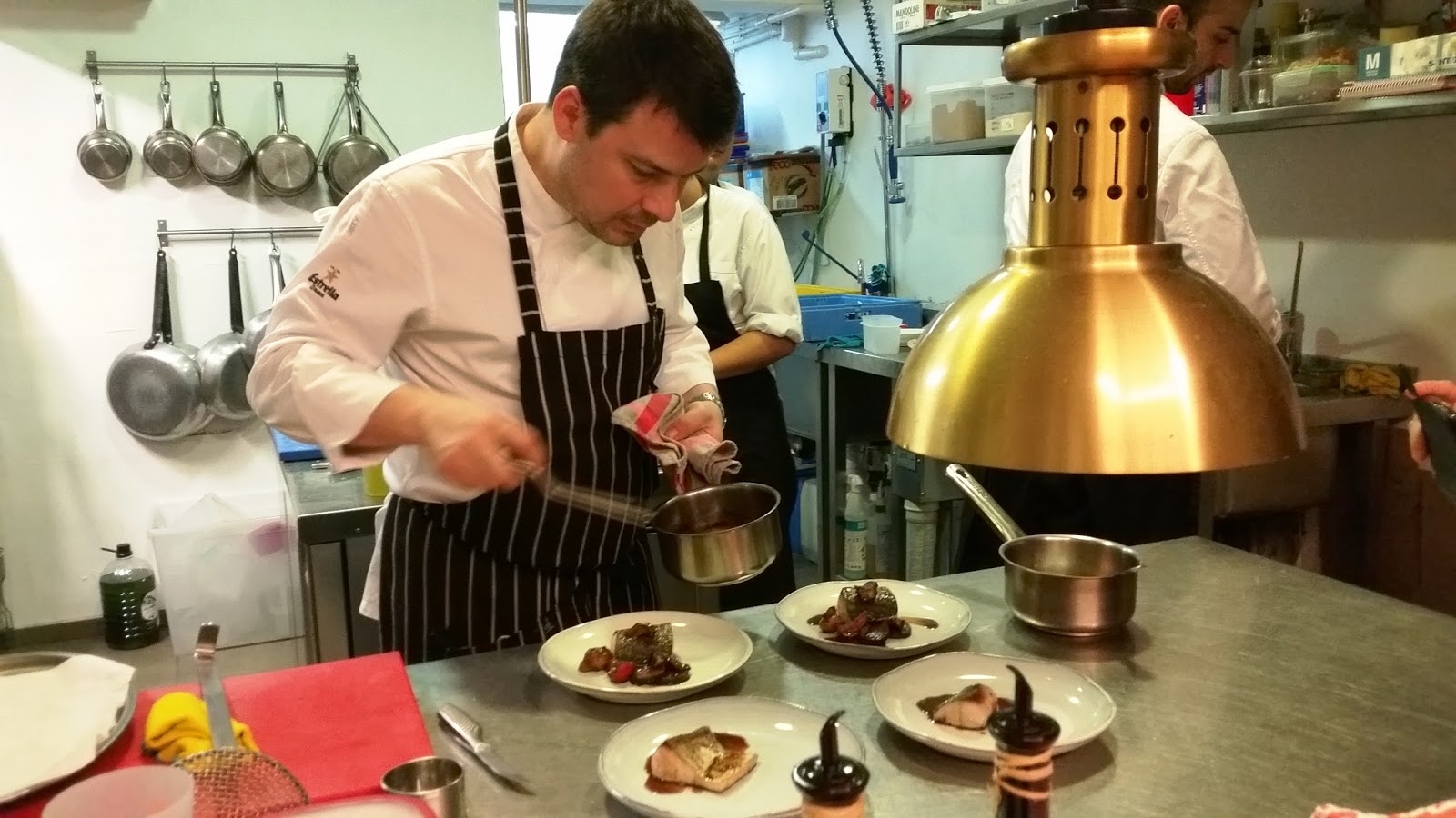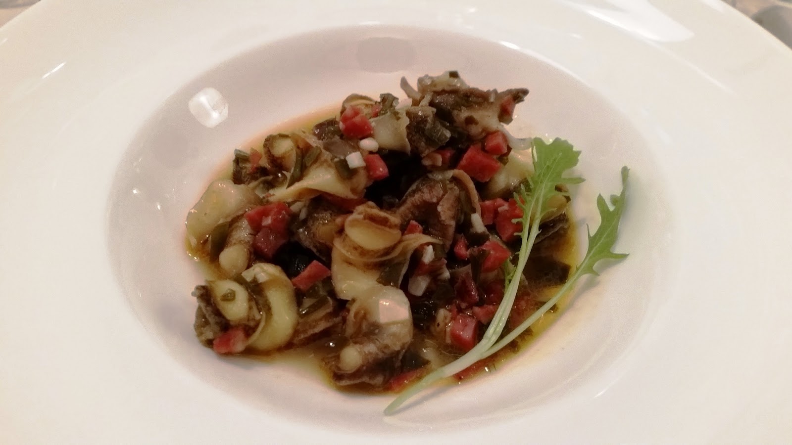 Mar i muntanya de cargols de punxa i terra amb xoriço, algues fumades i all de Belltall |